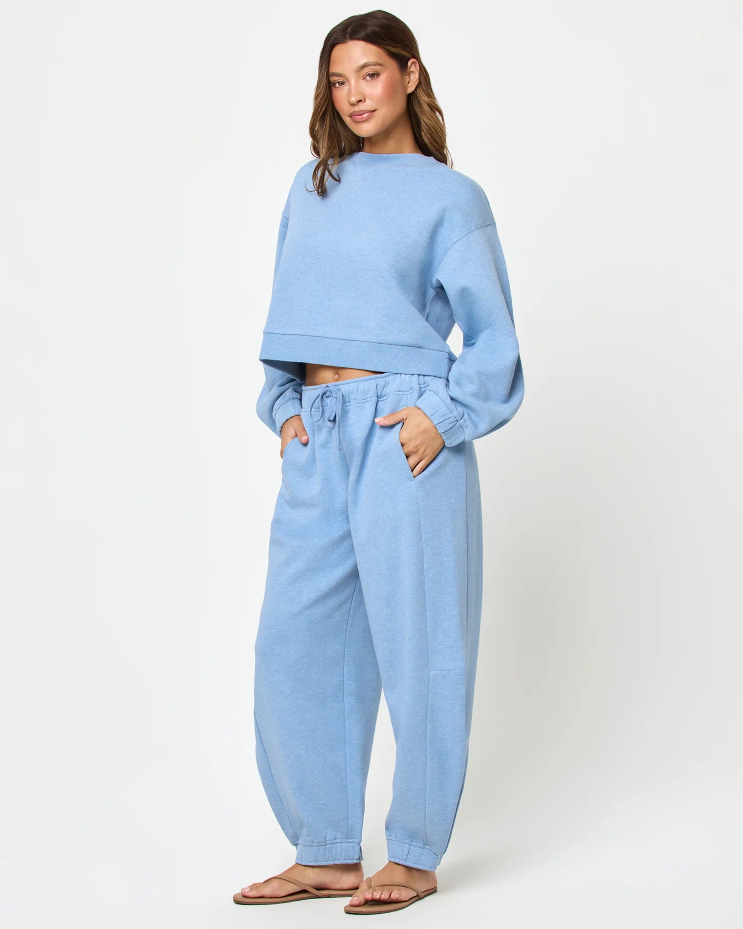 Your new comfort crush in the dreamiest chambray blue. These barrel sweats bring cozy romance with a fashion-forward shape- perfect for lounging pretty or stepping out styled to be seen. Pair with the matching sweatshirt for a cohesive look.